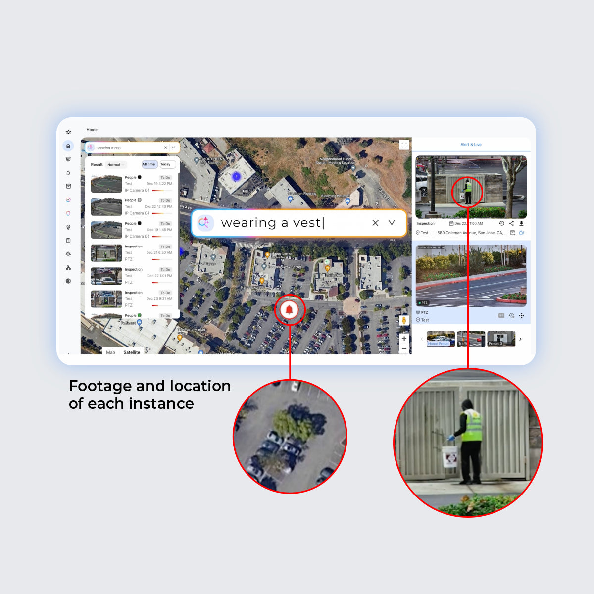 Utilize natural language or images to instantly locate events, people, objects across your camera network.